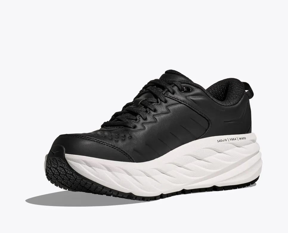 The Bondi SR takes the most cushioned shoe in the HOKA road-shoe lineup and reworks the silhouette to handle the demands of daily life. Updated with water-resistant leather, a slip-resistant outsole and EVA midsole to ensure all-day cushion, this workplace warrior features an ultra-grippy, full ground contact rubber that stands up to the demands of the service industry and medical field alike.