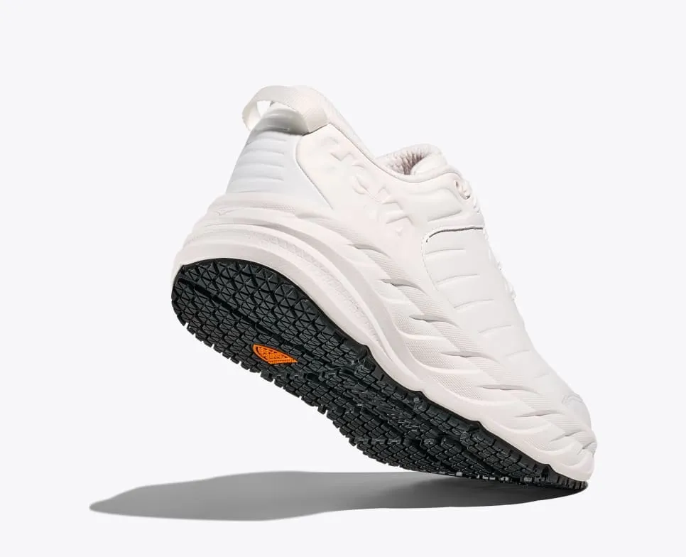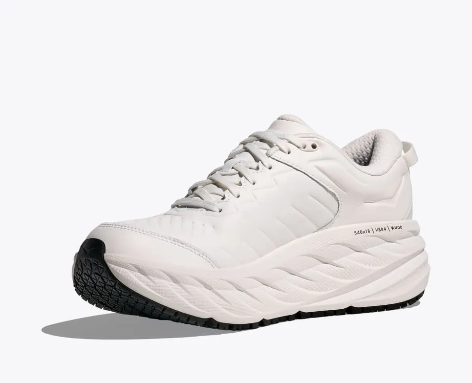 The Bondi SR takes the most cushioned shoe in the HOKA road-shoe lineup and reworks the silhouette to handle the demands of daily life. Updated with water-resistant leather, a slip-resistant outsole and EVA midsole to ensure all-day cushion, this workplace warrior features an ultra-grippy, full ground contact rubber that stands up to the demands of the service industry and medical field alike.