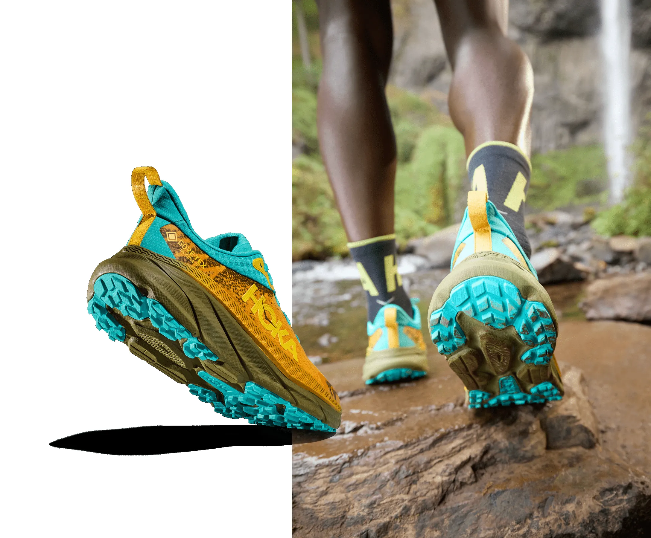 Built at the intersection of road and trail, the Challenger 7 GTX has been completely reimagined from the ground up. Combining a simplified mesh upper with a soft new foam, we’ve increased the stack height for a plusher feel and added GORE-TEX INVISIBLE FIT with recycled content product technology for enhanced protection in inclement weather. Inspired by gravel tires, we’ve cued up smaller, tightly spaced lugs in center and larger, more aggressive lugs at the perimeter designed for improved traction on uneven terrain.
