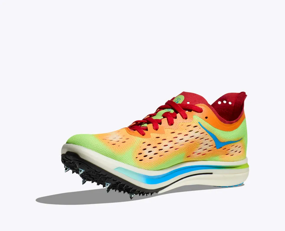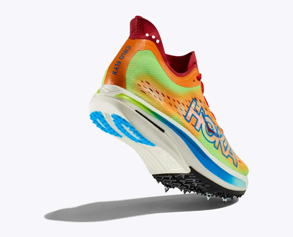 The most energetic spike on the track. When it comes to cushioning, we prescribe to a very strict, “more is more” policy. The new Cielo FLYX breaks the mold with 25mm of bouncy, high resiliency PEBA foam. We’ve employed a composite plate that doubles as both a midsole propulsion plate and outsole spike plate, along with an ultra-breathable, engineered mesh upper, to deliver an elite race spike that will tackle anything from 1500 meters to 10K and every distance in between.
