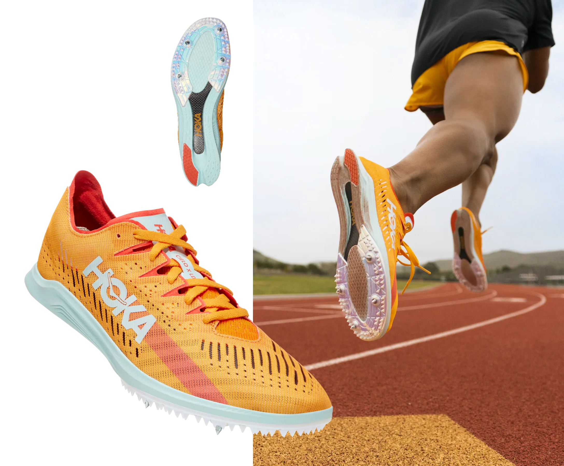 When ripping around the track at dizzying speeds, a fast spike is a prerequisite for performance. Engineered with a propulsive carbon fiber plate and designed in accordance with World Athletics’ guidelines, the Cielo X LD is equipped for longer range distances (3K-10K). Combined with HOKA’s lightest performance foam, this responsive race spike delivers a snappy ride in under 4 ounces.