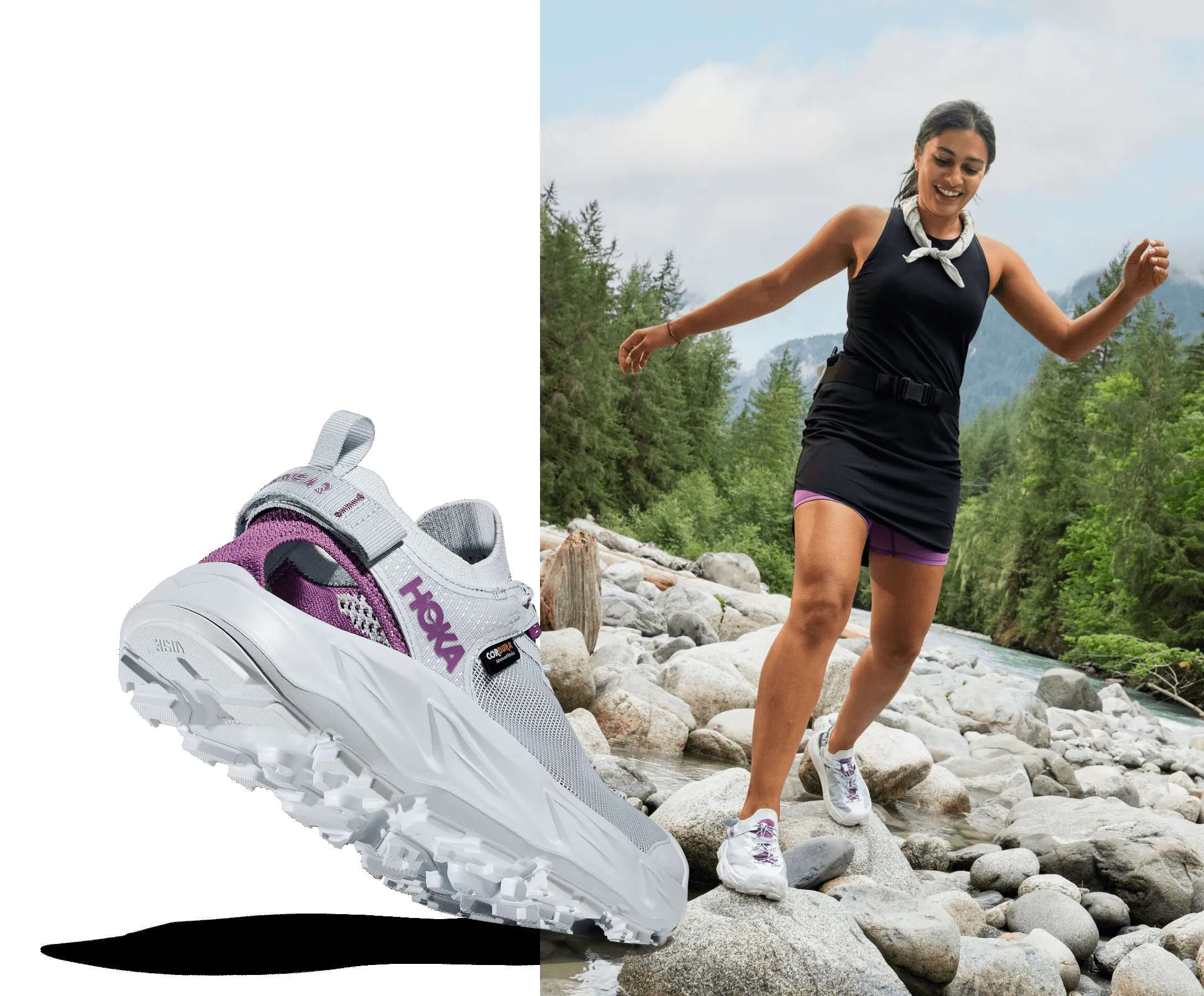 Feels like a sandal, functions like a hiker. Equally at home by land or water, the Hopara 2 tackles mud, dirt, and rocks with the same amphibian-like ease. Reconceived with earth-conscious materials, we’ve implemented a 30% sugarcane topsole & midsole, 100% recycled knit upper, and 100% recycled Cordura® mesh overlays to allow for water drainage while keeping trail debris at bay. Engineered with a toggle lace, adjustable heel strap, and quick-dry water repellency, there’s no need to take your shoes off at the next creek crossing.