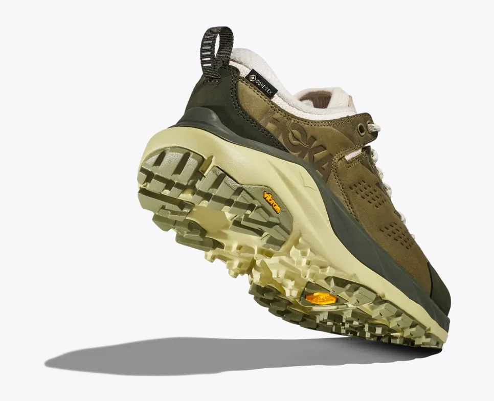 Engineered with the same geometries and materials as the original silhouette, the Kaha Low GTX emerges this season in a lower, ankle-height profile. Taking its name from the Māori word for strength and support, the Kaha delivers on both, making uphill climbs easier and downhill descents faster. Remarkable in its weight-to-cushion ratio, the Kaha Low GTX offers the full HOKA package — combining proprietary foams, patented geometries, exceptional Vibram® Megagrip traction and an adjustable lacing system for foot lockdown. Soft and smooth, yet inherently supportive, the new Kaha Low GTX features the same GORE-TEX bootie as the original, designed to keep feet comfortable and dry in any forecast. Hike on, the trail awaits.